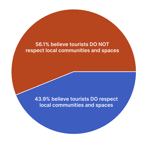 According to our research, we found that 56.1% of locals believe that tourists do not respect local communities and spaces. Some common sentiments were: