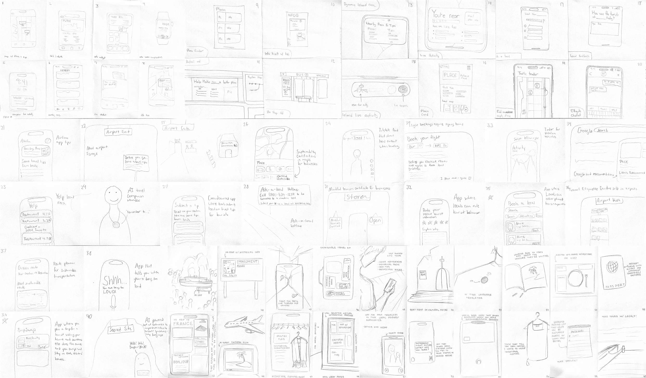 With a clear design opportunity, we generated 60 ideas to help tourists experience destinations authentically while respecting local culture. We encouraged creative, outside-the-box thinking before narrowing them down based on feasibility and our interest in developing the concept.